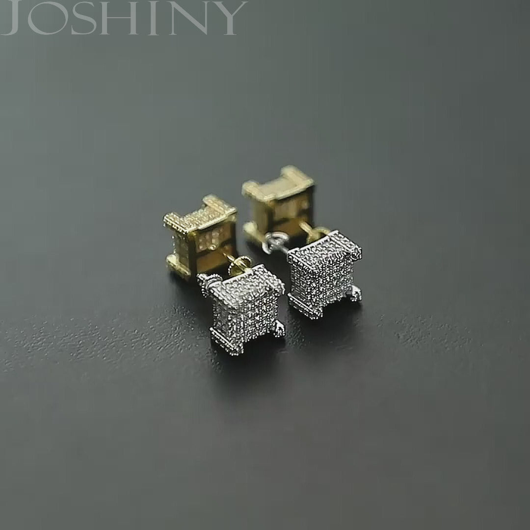 This is a striking earring. The unique square design with full bezel setting is very delicate and eye-catching! They are set with brilliant round cut white stones. Total weight is approximately 2 carats. The earrins is made of 925 silver throughout, with thick gold plating, which makes the luster last longer compared to other single layer plating. The style is personalized and gorgeous, bringing more possibilities for your fashion collocation.