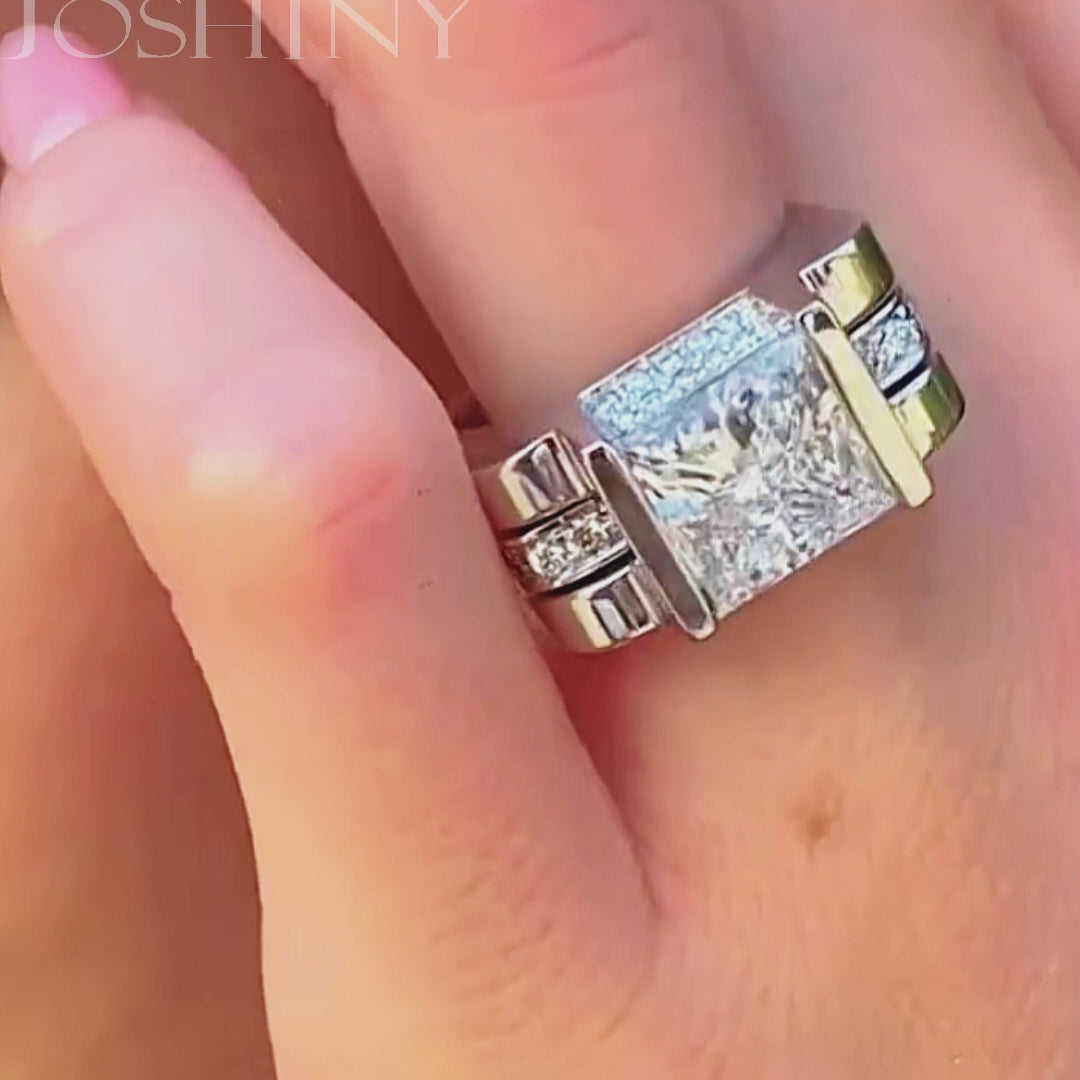 Unique 3 ctw Square Cut White Gemstone Engagement Ring -JOSHINY