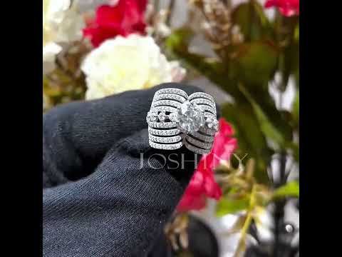 This unique engagement ring is designed to be elegant and stylish, making it perfect for a variety of occasions. It is set with a combination of bright round-cut white gemstones of different sizes. The workmanship is exquisite and sparkling. The widened V-shaped ring arm can well modify the hand shape and make your fingers appear slimmer and longer. Total weight is approximately 4 carats.The ring is made of 925 silver throughout, with thick gold plating, which makes the luster last longer compared to other single layer plating. The style is personalized and exquisite, bringing more possibilities for your fashion collocation.