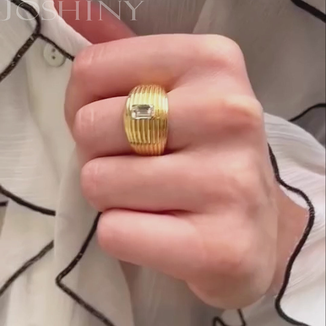 This is a stylish vintage design engagement ring that can be worn by both men and women! The center features a brilliant emerald cut white main stone. The craftsmanship is exquisitely detailed and sparkling! Comfortable to wear and perfect for everyday wear. Total weight is approximately 0.6 carats.The ring is made of 925 silver throughout, with thick gold plating, which makes the luster last longer compared to other single layer plating. The style is personalized and vintage, bringing more possibilities for your fashion collocation.