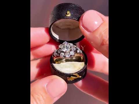 This is a striking engagement ring! The flower shape design is vintage and elegant, and the craftsmanship is refined and sparkling, making it suitable for many occasions. Set with a combination of brilliant round cut white stones. Total weight is approximately 2 carats.The ring is made of 925 silver throughout, with thick gold plating, which makes the luster last longer compared to other single layer plating. The style is vintage and elegant, bringing more possibilities for your fashion collocation.