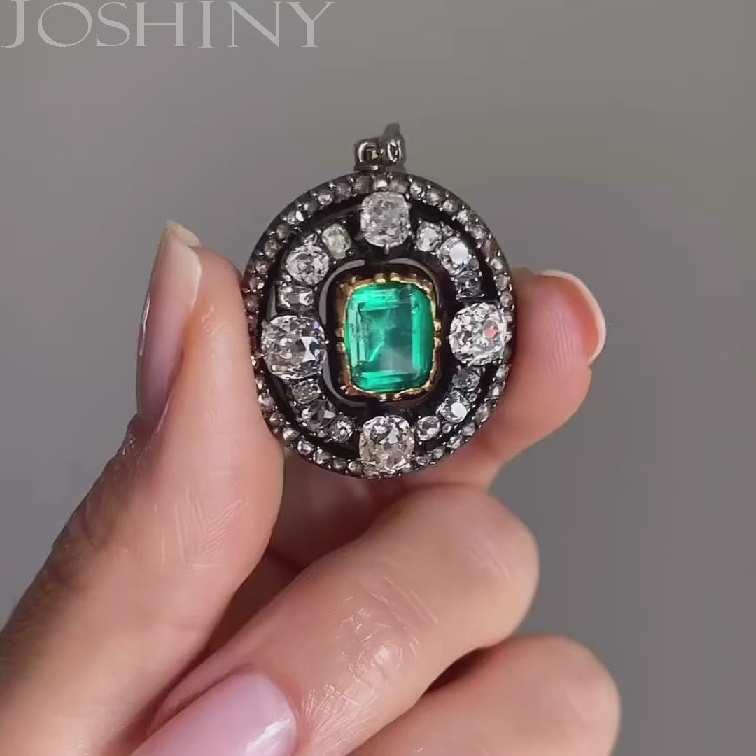 Vintage 3 ctw Multi-Cut Emerald & White Gemstone Pendant -JOSHINY