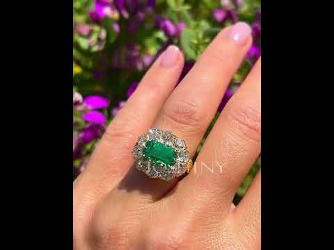 Vintage 4 ctw Emerald & Round Cut Emerald & White Gemstone Flower Ring -JOSHINY