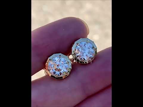 This is a vintage style earring that can be worn by both men and women. The design is simple and fashionable. Set with two brilliant round cut white gemstones. Total weight is approximately 4 carats. The earrings is made of 925 silver throughout, with thick gold plating, which makes the luster last longer compared to other single layer plating. The style is vintage and simple, bringing more possibilities for your fashion collocation.