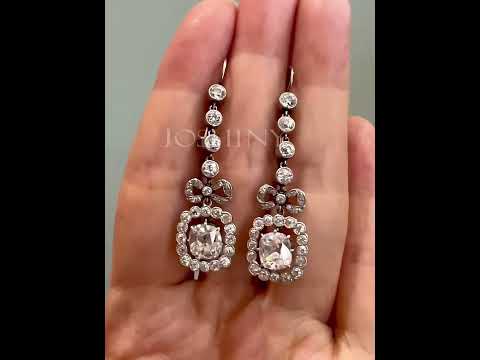 Vintage 8 ctw Cushion Cut White Gemstone Bow Earrings -JOSHINY